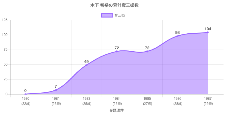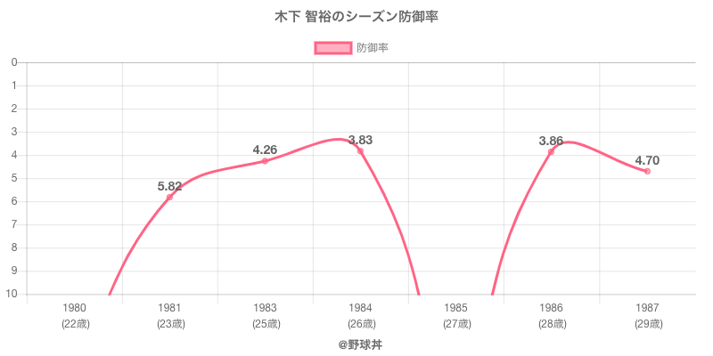 木下 智裕 (68歳)は1980年から1987年にかけて活躍した元阪急や読売所属のプロ野球選手です。 投打は左投左打で、守備位置は主に投手、日本球界初出場は1980年で当時23歳でした。 同年代には山内(元中日)大川(元日本ハム)がいます。 過去には1983年阪急で全41試合出場42奪三振や1986年読売で全37試合出場26奪三振という結果を残しています。