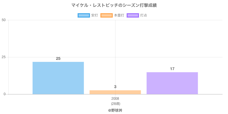 マイケル・レストビッチ (46歳)は2008年から2008年にかけて活躍した元福岡ソフトバンク所属のプロ野球選手です。 投打は右投右打で、守備位置は主にができ、日本球界初出場は2008年で当時29歳でした。 同年代には大須賀(元広島東洋)や林(元広島東洋)がいます。 過去には2008年福岡ソフトバンクで全48試合出場ヒット25本という結果を残しています。