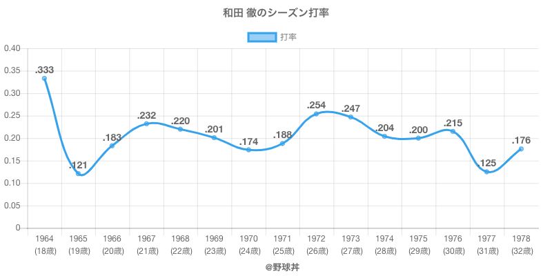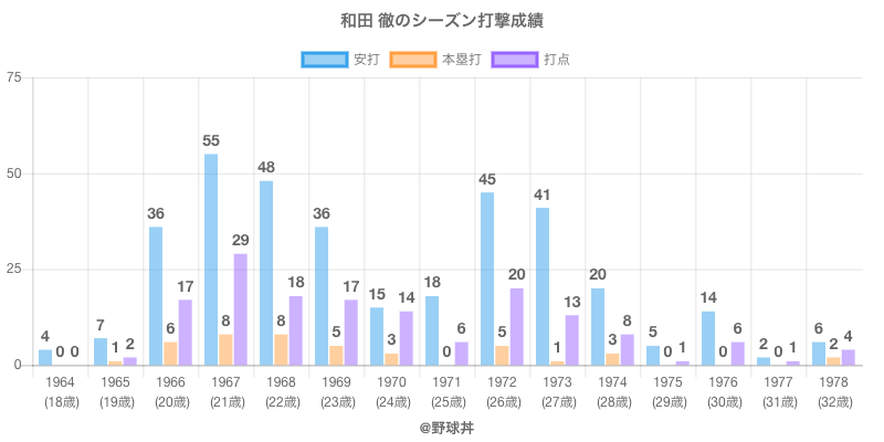 和田 徹 (80歳)は1964年から1978年にかけて活躍した元南海や阪神所属のプロ野球選手です。 投打は右投右打で、守備位置は主に捕手・一塁手・外野手ができ、日本球界初出場は1964年で当時19歳でした。 同年代にはマイク(元日本ハム)や田中(元南海)がいます。 過去には1973年阪神で全90試合出場ヒット41本や1968年阪神で全88試合出場ヒット48本という結果を残しています。