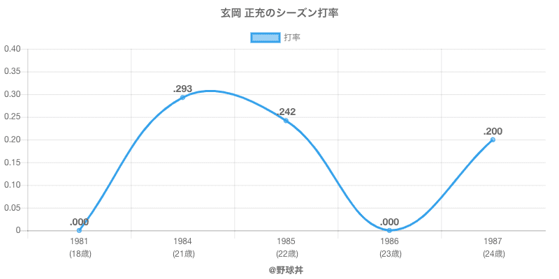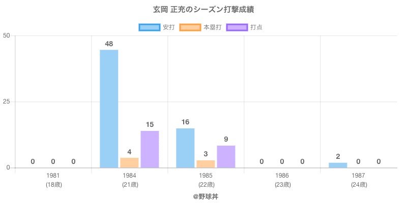 玄岡 正充 (63歳)は1981年から1987年にかけて活躍した元ヤクルト所属のプロ野球選手です。 投打は右投左打で、守備位置は主に外野手ができ、日本球界初出場は1981年で当時19歳でした。 同年代には宮下(元横浜大洋)榊原(元福岡ダイエー)がいます。 過去には1984年ヤクルトで全81試合出場ヒット48本や1985年ヤクルトで全62試合出場ヒット16本という結果を残しています。