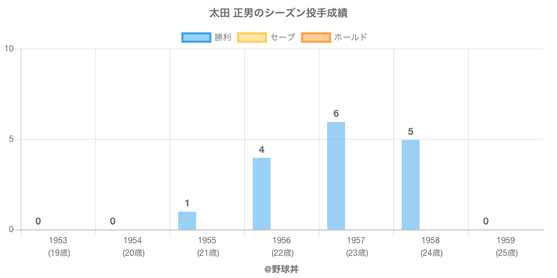 | 1958 | 毎日大映オリオンズ | 32 | 75 | .625 | 5 | 3 | 0 | 33 |