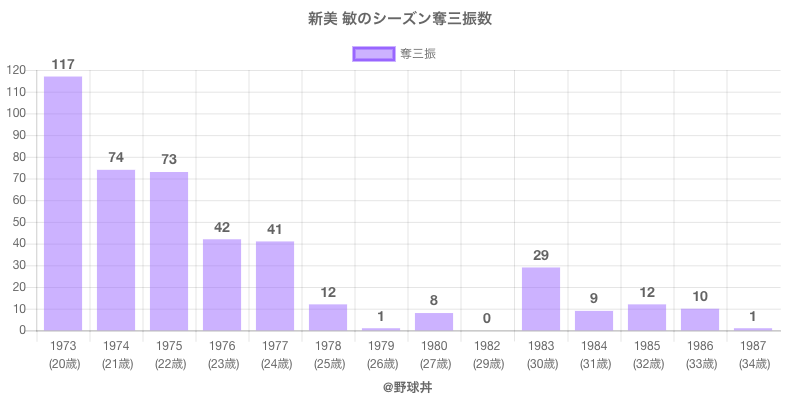 | 1977 | 広島東洋カープ | 22 | 78 | .300 | 3 | 7 | 2 | 41 |