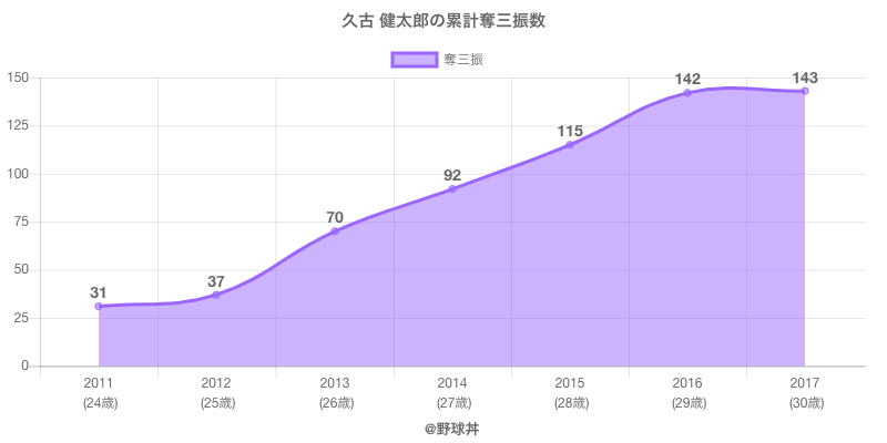 | 2011 | 東京ヤクルトスワローズ | 52 | 37 | .714 | 5 | 2 | 0 | 31 |