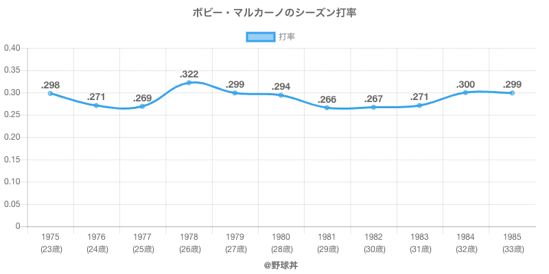 ボビー・マルカーノ (74歳)は1975年から1985年にかけて活躍した元ヤクルトや阪急所属のプロ野球選手です。 投打は右投右打で、守備位置は主にができ、日本球界初出場は1975年で当時24歳でした。 同年代には八重沢(元日本ハム)や三浦(元横浜大洋)がいます。 過去には1983年ヤクルトで全128試合出場ヒット132本や1976年阪急で全127試合出場ヒット134本という結果を残しています。 また1度主要タイトルを獲得しています。(最多打点1回)