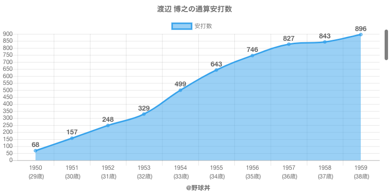 | 1950 | 大阪タイガース | 66 | 226 | .301 | 68 | 11 | 44 |