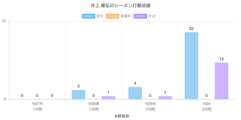 | 1938秋 | 15 | 18 | .222 | 4 | 0 | 1 | |