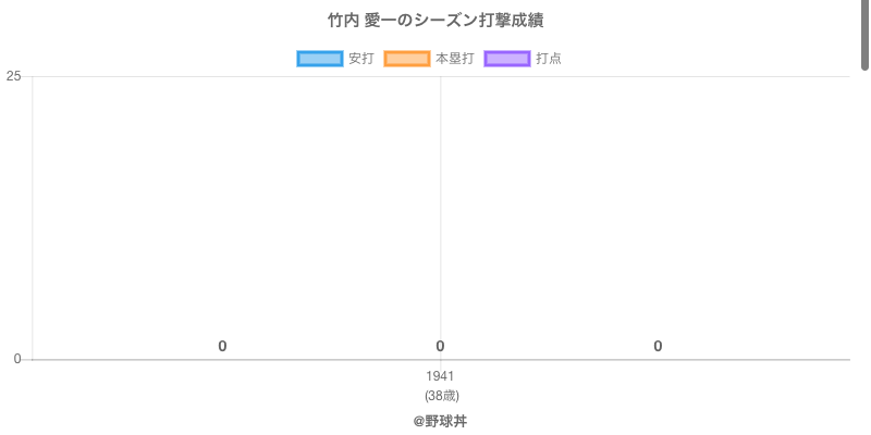 竹内 愛一は1941年から1941年にかけて活躍した元朝日所属のプロ野球選手です。 投打は右投右打で、守備位置は主に投手、日本球界初出場は1941年で当時38歳でした。 同年代には高田(元ライオン)がいます。