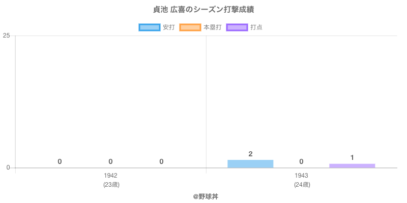 貞池 広喜は1942年から1943年にかけて活躍した元西鉄や大洋所属のプロ野球選手です。 投打は右投右打で、守備位置は主にができ、日本球界初出場は1942年で当時23歳でした。 同年代には深尾(元南海)中河(元黒鷲)がいます。 過去には1943年西鉄で全6試合出場ヒット2本という結果を残しています。