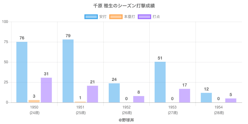 | 1950 | 国鉄スワローズ | 93 | 319 | .238 | 76 | 3 | 31 |
