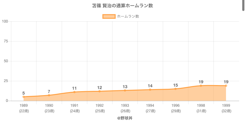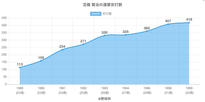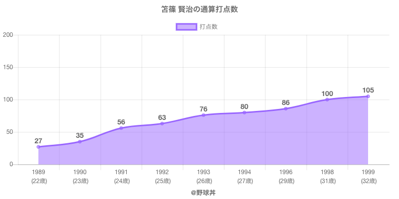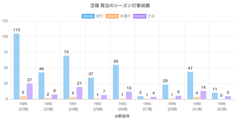 | 1989 | ヤクルトスワローズ | 120 | 429 | .263 | 113 | 5 | 27 |