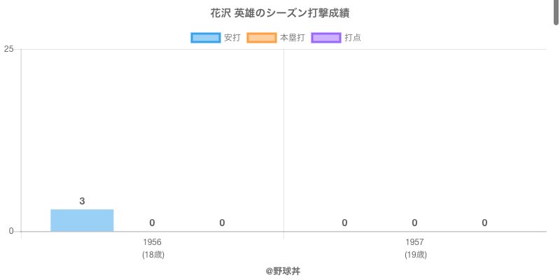 花沢 英雄 (88歳)は1956年から1957年にかけて活躍した元大映所属のプロ野球選手です。 投打は右投右打で、守備位置は主に投手、日本球界初出場は1956年で当時19歳でした。 同年代には土居(元大毎)坂崎(元東映)がいます。 過去には1956年大映で全12試合出場防御率6.00という結果を残しています。