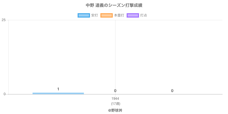 中野 道義 (99歳)は1944年から1944年にかけて活躍した元阪神所属のプロ野球選手です。 投打は右投右打で、守備位置は主に捕手ができ、日本球界初出場は1944年で当時18歳でした。 同年代には石川(元松竹)や平桝(元パシフィック)がいます。 過去には1944年阪神で全6試合出場ヒット1本という結果を残しています。