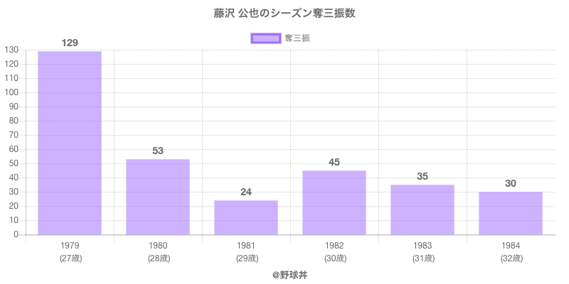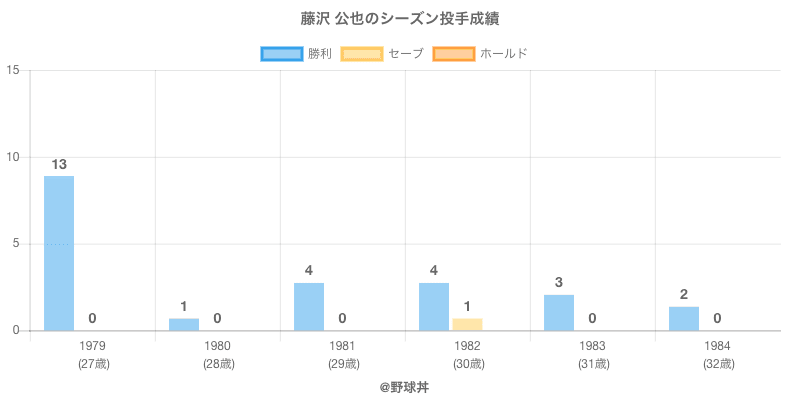藤沢 公也 (74歳)は1979年から1984年にかけて活躍した元中日所属のプロ野球選手です。 投打は右投右打で、守備位置は主に投手、日本球界初出場は1979年で当時28歳でした。 同年代には門田(元広島東洋)太田(元近鉄)がいます。 過去には1983年中日で全34試合出場35奪三振や1979年中日で全33試合出場129奪三振という結果を残しています。 また2度主要タイトルを獲得しています。(最優秀新人1回 / 最高勝率1回)