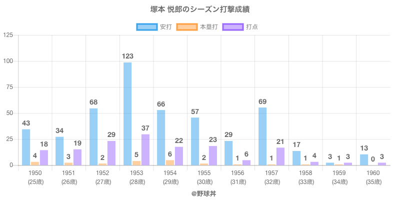 | 1951 | 西鉄ライオンズ | 76 | 144 | .236 | 34 | 3 | 19 |