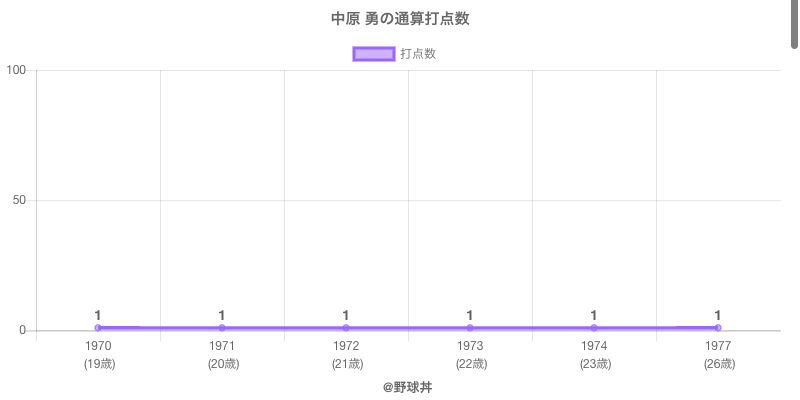 | 1970 | 東映フライヤーズ | 21 | 19 | .105 | 2 | 0 | 1 |