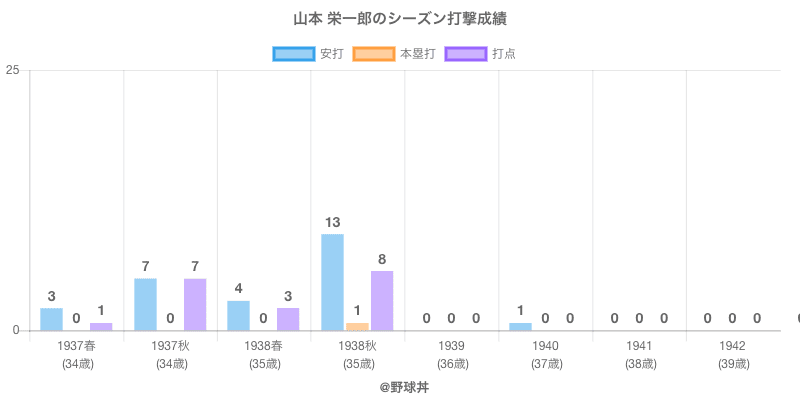 | 1936秋 | 19 | 35 | .200 | 7 | 0 | 7 | |