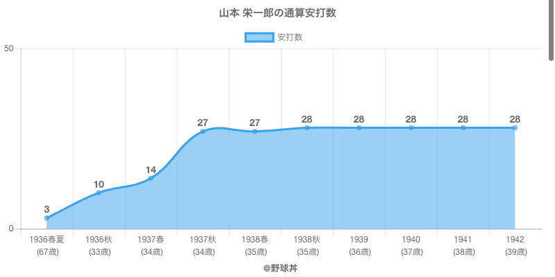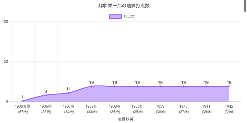| 1937秋 | 20 | 54 | .241 | 13 | 1 | 8 | |