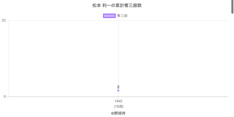まつもと りいち 松本 利一 松本 利一は1940年から1943年にかけて活躍した元金鯱や阪急所属のプロ野球選手です。 投打は左投左打で、守備位置は主に投手、日本球界初出場は1940年で当時19歳でした。 同年代には三輪(元阪神)や池田(元朝日)がいます。