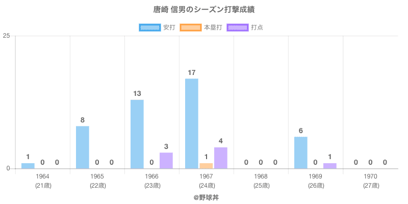 | 1964 | 南海ホークス | 12 | 4 | .250 | 1 | 0 | 0 |
