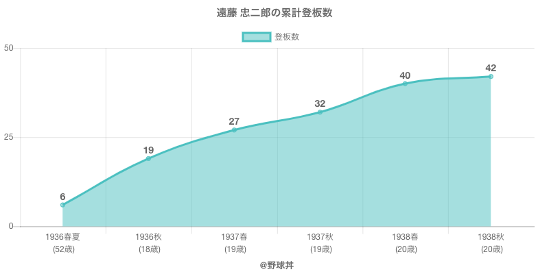 | 1938秋 | 36 | 132 | .242 | 32 | 5 | 21 | |