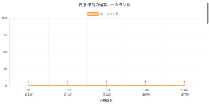 | 1982 | 近鉄バファローズ | 28 | 20 | .100 | 2 | 1 | 4 |