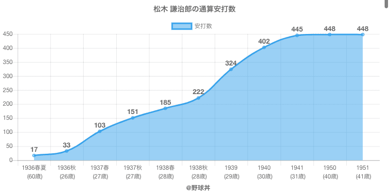| 1937春 | 56 | 207 | .338 | 70 | 4 | 28 | |