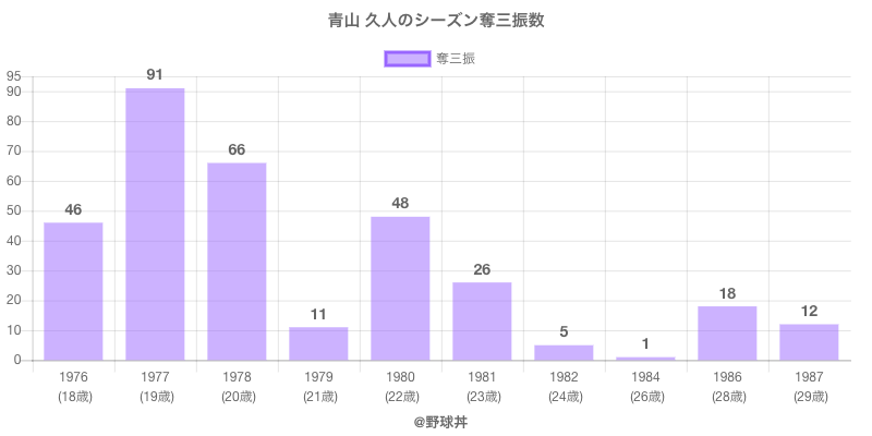 青山 久人 (68歳)は1976年から1987年にかけて活躍した元南海や中日所属のプロ野球選手です。 投打は右投右打で、守備位置は主に投手、日本球界初出場は1976年で当時19歳でした。 同年代にはマックス(元千葉ロッテ)ビル(元日本ハム)がいます。 過去には1977年中日で全44試合出場91奪三振や1978年中日で全34試合出場66奪三振という結果を残しています。