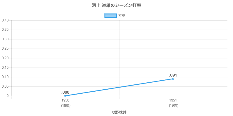 かわかみ みちお 河上 道雄 河上 道雄 (94歳)は1950年から1951年にかけて活躍した元大映所属のプロ野球選手です。 投打は右投右打で、守備位置は主にができ、日本球界初出場は1950年で当時19歳でした。 同年代にはディック(元近鉄)や藤田(元読売)がいます。 過去には1951年大映で全13試合出場ヒット1本という結果を残しています。