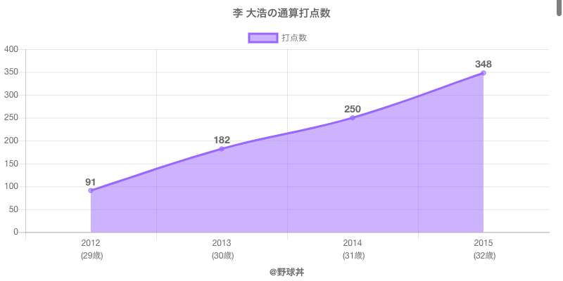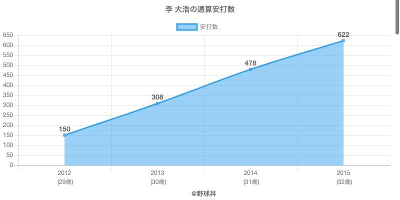 | 2012 | オリックス・バファローズ | 144 | 525 | .286 | 150 | 24 | 91 |