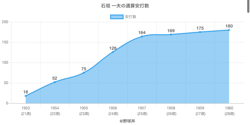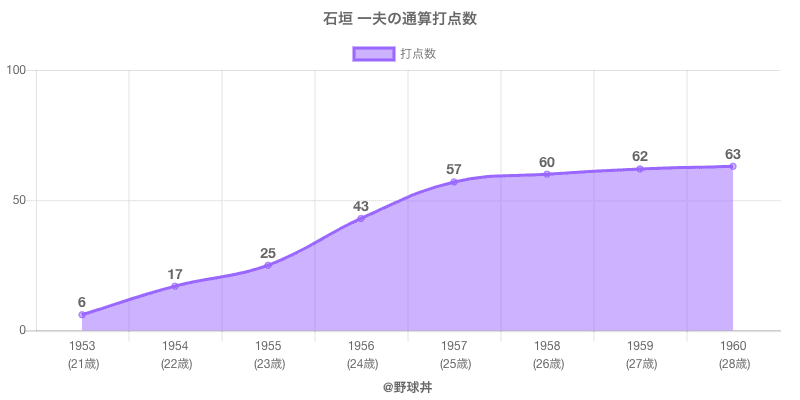 | 1953 | 大阪タイガース | 57 | 66 | .273 | 18 | 0 | 6 |