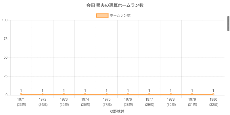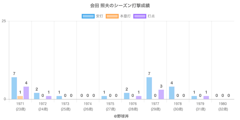 | 1974 | ヤクルトスワローズ | 35 | 68 | .000 | 0 | 2 | 0 | 31 |
