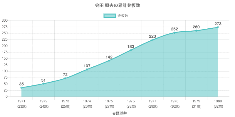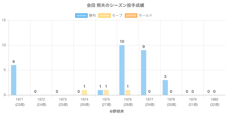 | 1971 | ヤクルトアトムズ | 35 | 138 | .545 | 6 | 5 | 3 | 67 |