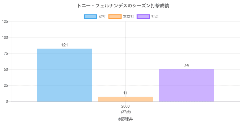トニー・フェルナンデス (63歳)は2000年から2000年にかけて活躍した元西武所属のプロ野球選手です。 投打は右投両打で、守備位置は主にができ、日本球界初出場は2000年で当時38歳でした。 同年代には島田(元千葉ロッテ)山越(元オリックス)がいます。 過去には2000年西武で全103試合出場ヒット121本という結果を残しています。