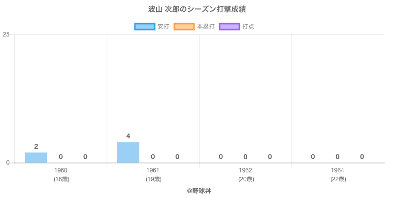 | 1961 | 20 | 58 | .200 | 1 | 4 | 2 | 28 | |