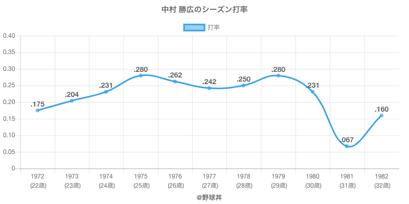 | 1972 | 阪神タイガース | 81 | 177 | .175 | 31 | 3 | 9 |