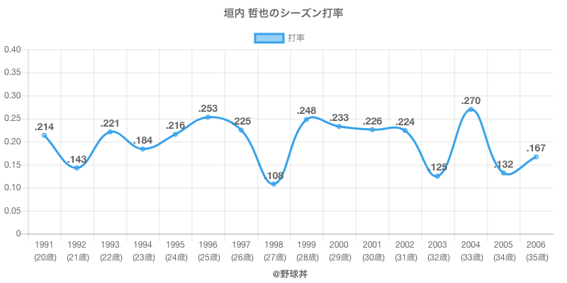 | 2003 | 千葉ロッテマリーンズ | 17 | 24 | .125 | 3 | 1 | 2 |
