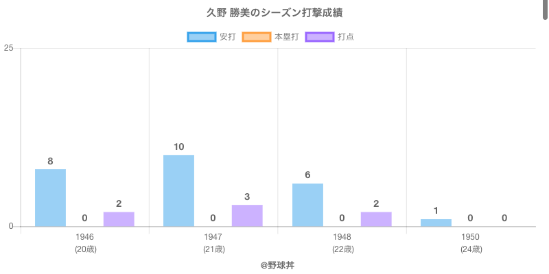 | 1948 | 中日ドラゴンズ | 42 | 53 | .113 | 6 | 0 | 2 |