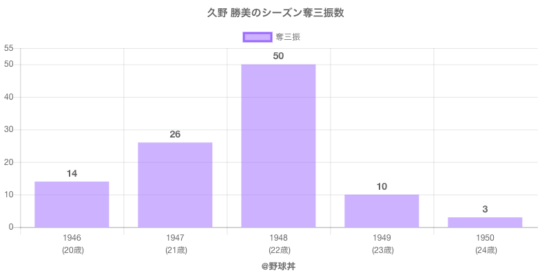| 1948 | 中日ドラゴンズ | 42 | 181 | .278 | 5 | 13 | 3 | 50 |