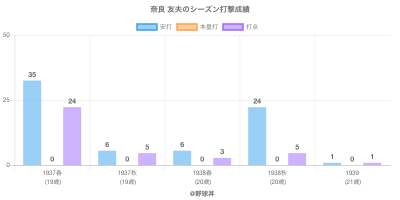 | 1937春 | 大阪タイガース | 45 | 139 | .252 | 35 | 0 | 24 |