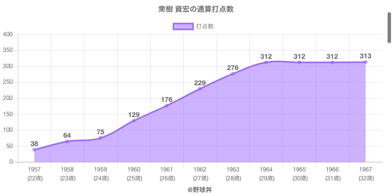 | 1957 | 毎日オリオンズ | 122 | 385 | .221 | 85 | 7 | 38 |