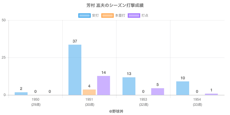 | 1950 | 近鉄パールズ | 77 | 209 | .177 | 37 | 4 | 14 |