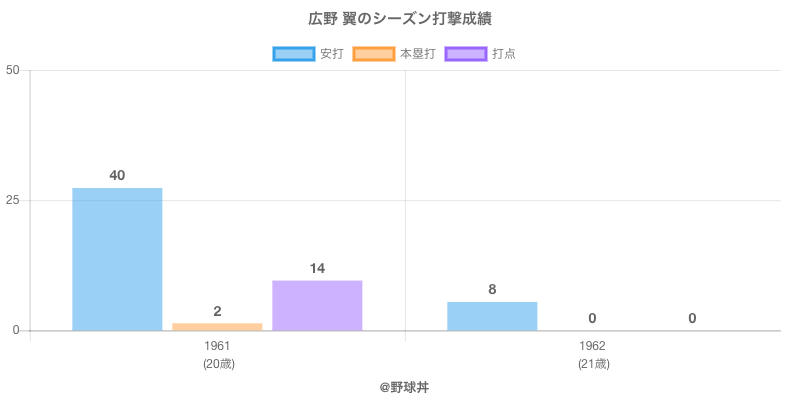 ひろの まもる 広野 翼 広野 翼 (85歳)は1961年から1962年にかけて活躍した元阪急所属のプロ野球選手です。 投打は右投左打で、守備位置は主に外野手ができ、日本球界初出場は1961年で当時21歳でした。 同年代にはジョン(元大洋)や岡村(元日本ハム)がいます。 過去には1961年阪急で全69試合出場ヒット40本や1962年阪急で全63試合出場ヒット8本という結果を残しています。