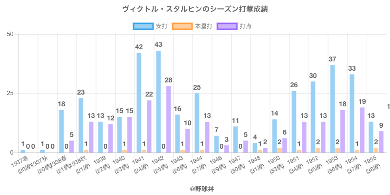 | 1938春 | 25 | 64 | .203 | 13 | 0 | 12 | |