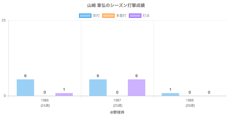 | 1987 | 22 | 20 | .300 | 6 | 0 | 6 | |