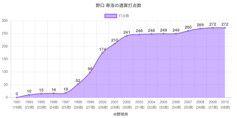 | 年度 | 球団 | 順位 | 打率 | 安打 | 本塁打 | 打点 |