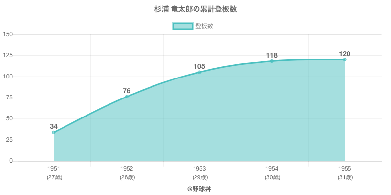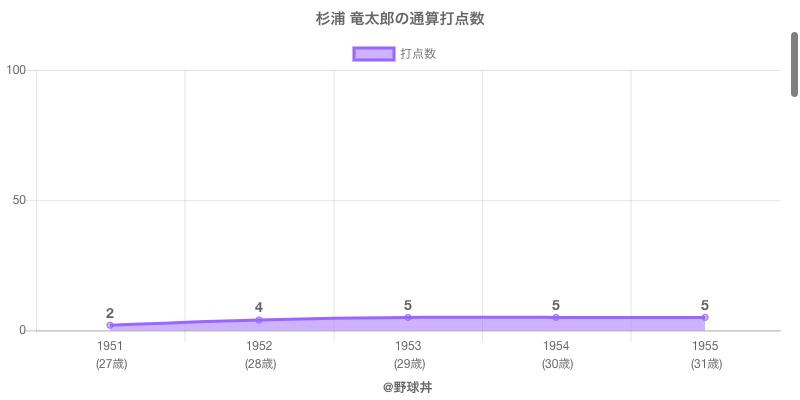 | 1951 | 広島カープ | 34 | 191 | .300 | 6 | 14 | 14 | 31 |