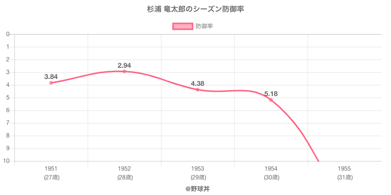 | 年度 | 球団 | 順位 | 防御率 | 試合 | 勝利 | 敗北 |