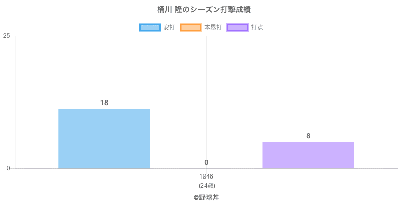おけかわ たかし 桶川 隆 桶川 隆は1946年から1946年にかけて活躍した元グレートリング所属のプロ野球選手です。 投打は右投右打で、守備位置は主にができ、日本球界初出場は1946年で当時24歳でした。 同年代には島田(元阪神)や大島(元阪神)がいます。 過去には1946年グレートリングで全51試合出場ヒット18本という結果を残しています。
