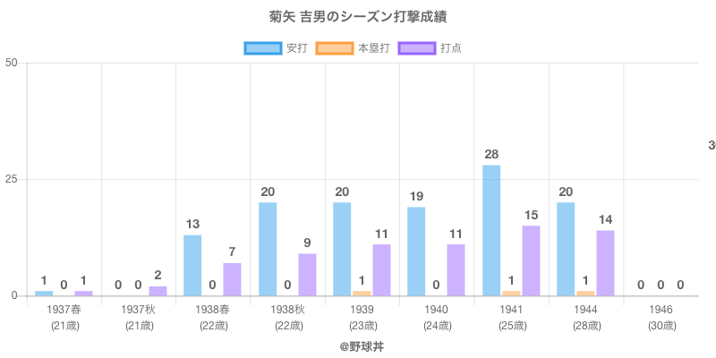 | 1937秋 | ライオン | 35 | 91 | .220 | 20 | 0 | 9 |