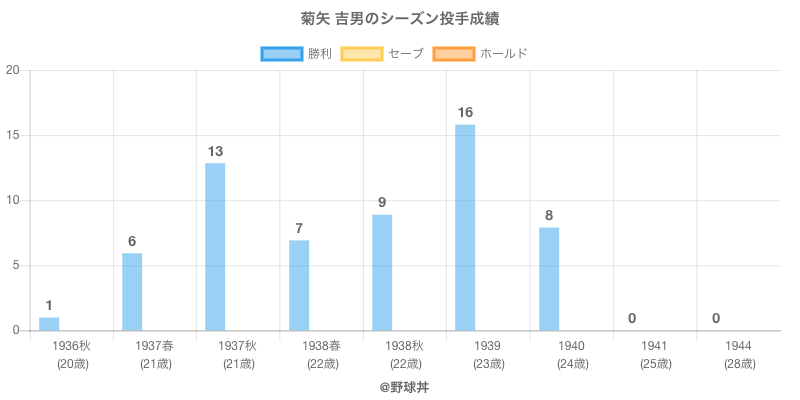 | 1936秋 | 7 | 6 | .000 | 0 | 0 | 2 | |